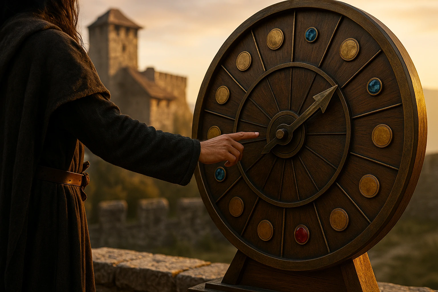 A medieval figure interacts with a glowing chest, symbolizing hidden daily rewards in a game-like setting.
